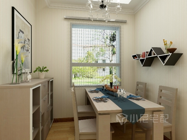 餐廳空間較小,利用餐邊柜進行收納和裝飾,解決空間不足的收納問題。