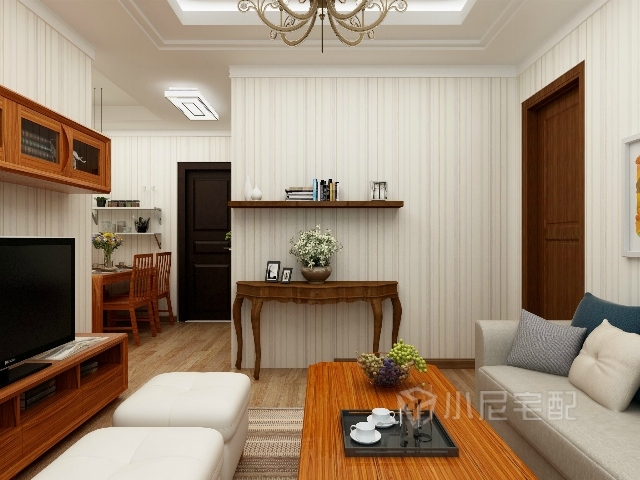 客廳的空間比較小,沒(méi)有過(guò)多的造型和裝飾,顯得簡(jiǎn)單利落。