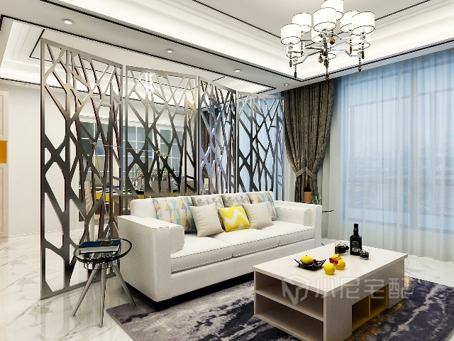 利用金屬質感的屏風作為隔斷,充分利用空間。