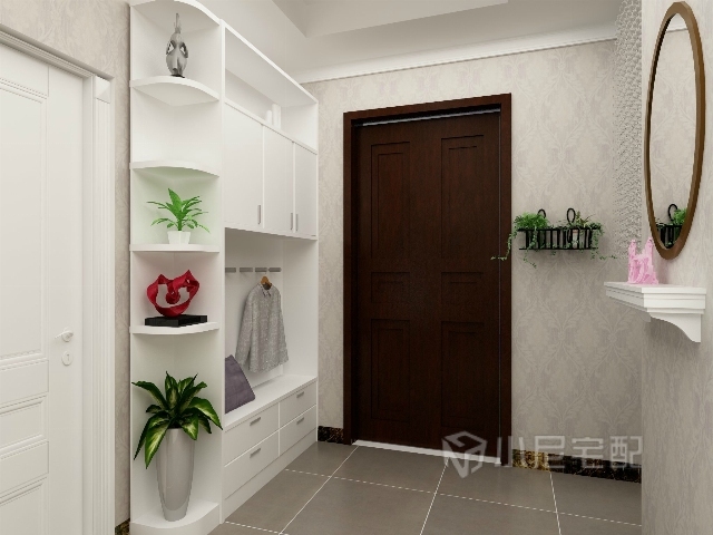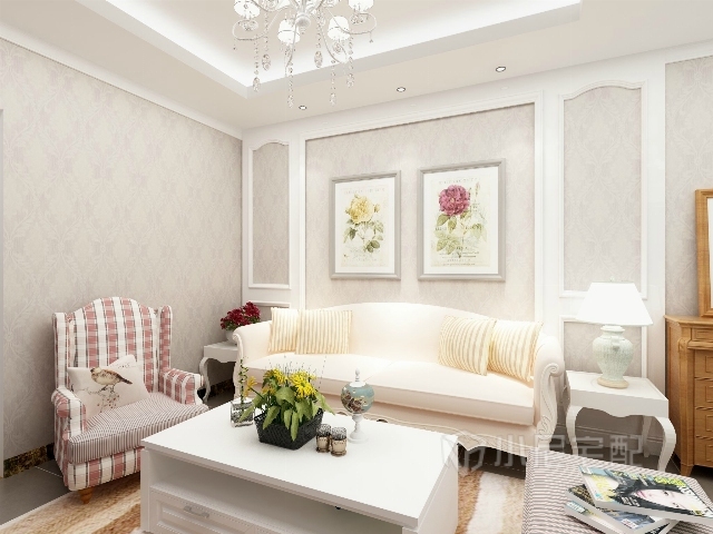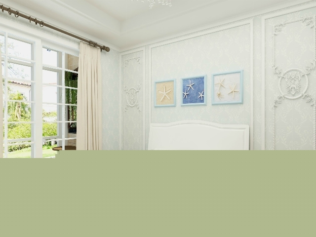 淡紫色的墻紙,簡歐的白色的背景墻,時尚清新。