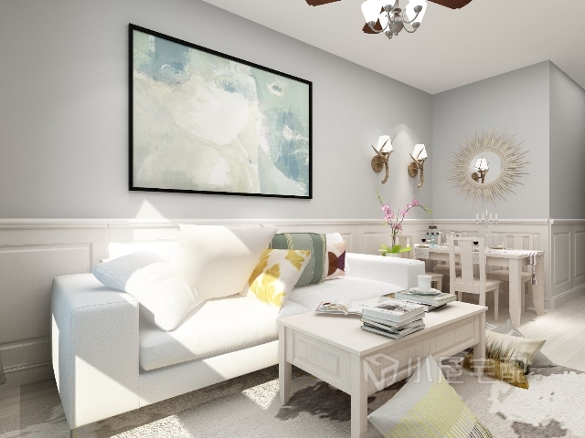客廳內采用了墻裙的設計,高端品位一下子就出來了