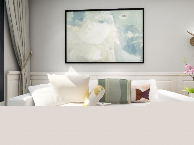 沙發背景采用了一幅大的抽象畫,顯得空間很整體,一點也不瑣碎