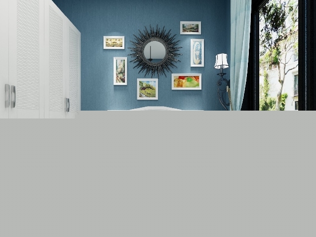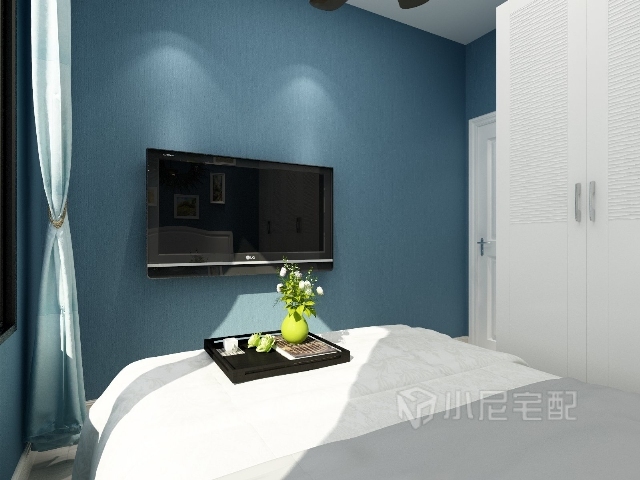 從窗戶看進來,湖藍色的墻面背景很有美式的特色