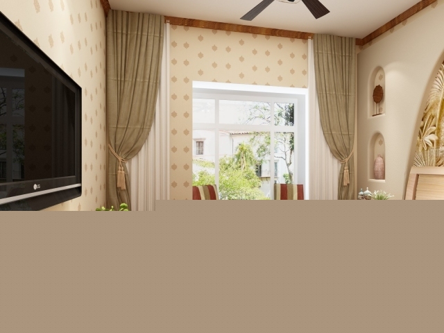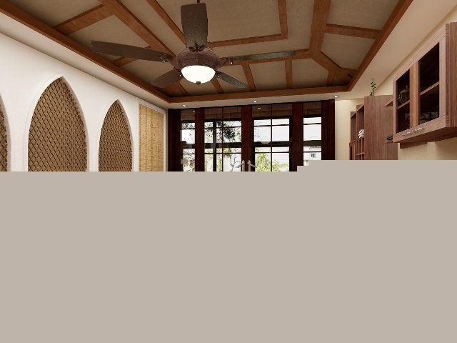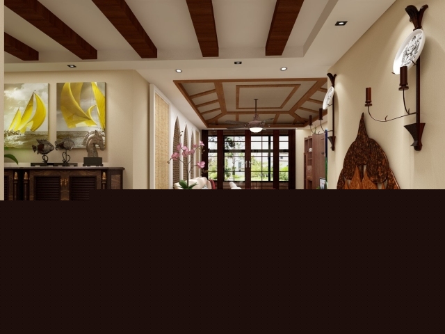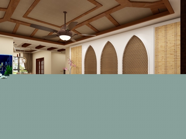 客廳的背景墻和吊頂,是非常經典的東南亞特色裝飾