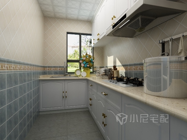 衛(wèi)生間上墻下墻腰線劃分了空間的層次