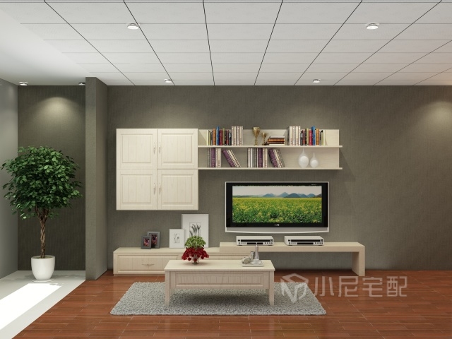 簡單的電視廳柜,配以略深的背景墻,彰顯高貴大氣