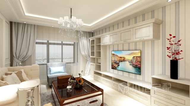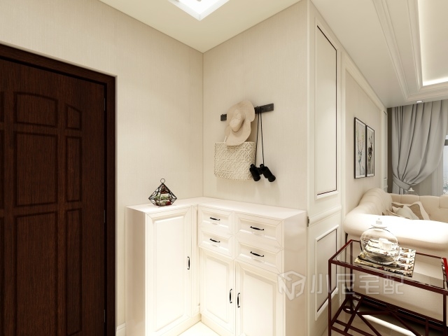 本次設計主要是簡歐風格,維度款珠光白顏色給人一種清新典雅的感覺,仿佛脫去了繁復,增加了幾分淡雅,搭配深色的茶幾,畫飾抱枕的點綴又增添了幾分家的味道。