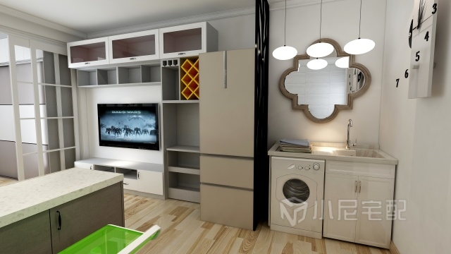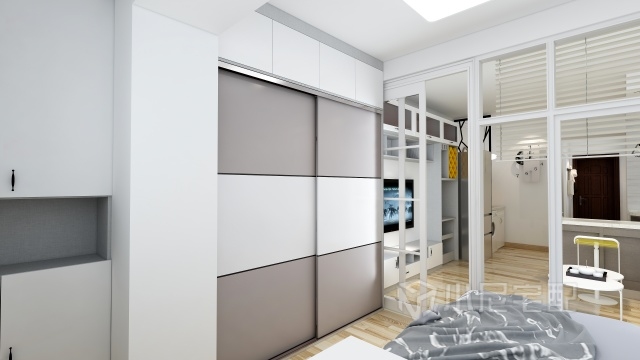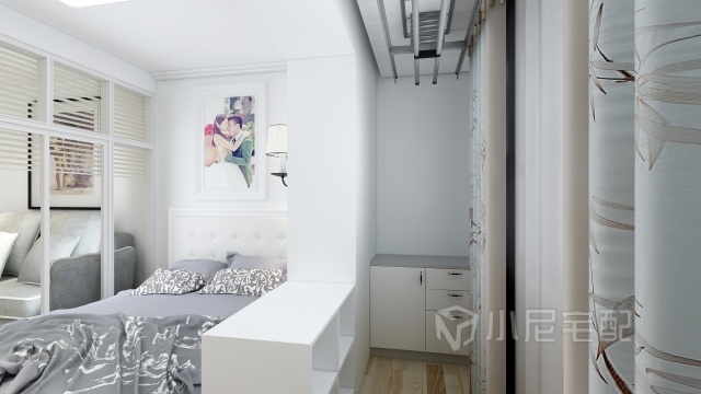 陽臺(tái)充分體現(xiàn)空間感,折疊梳妝臺(tái)和抽拉小凳。空間百變利用