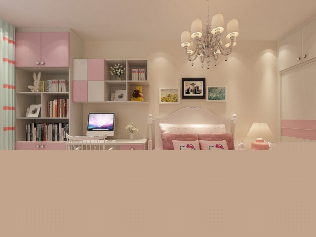 甜美的粉色星空圖案床品,搭配素雅簡潔的白色床單,讓臥室充滿女孩最愛的浪漫氣息。藤編床頭柜的點(diǎn)綴,讓這款房間增添了田園的感