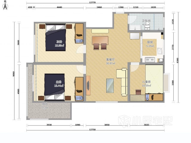 次臥室小尼宅配定制淺色衣柜,加以柔和的色調營造出輕松愜意的氣氛,歡迎客人的到來。