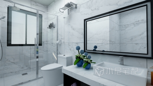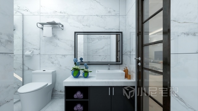 大大的深色浴室柜,在整個潔凈空間里起了畫龍點睛的作用。