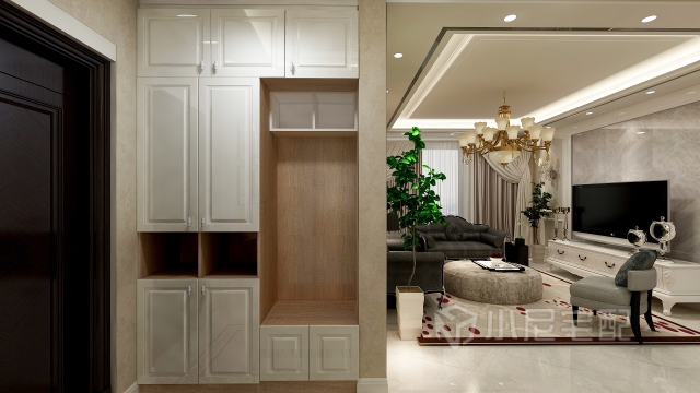 門廳鞋帽柜采用套色設計,白色門板提亮室內空間