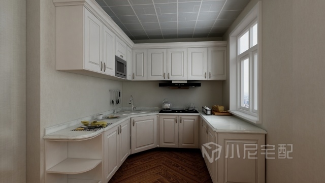 廚房的設(shè)計(jì)采用半開敞式設(shè)計(jì),廚房與餐廳連體,以展示出浪漫、舒適的生活。