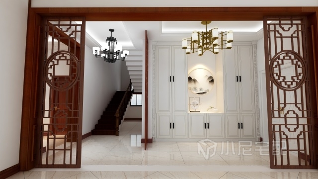 玄關(guān)處的鞋柜既增加了裝飾效果,又體現(xiàn)出了實(shí)用功能