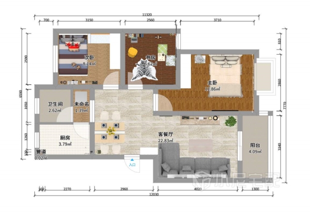 89.9㎡#三室兩廳一衛#混搭