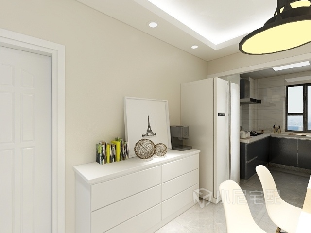 門(mén)口搭配了一個(gè)斗柜,增加了空間的飽滿度,而且簡(jiǎn)潔大方。