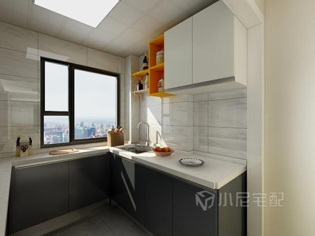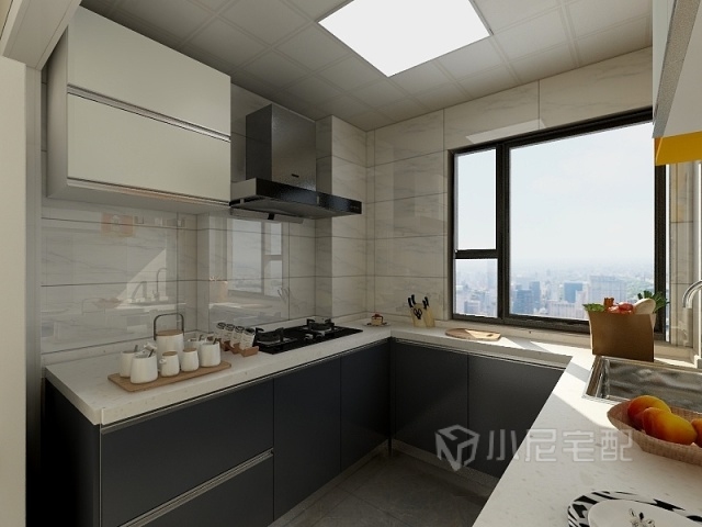 廚房墻面采用白色理石紋的瓷磚,給人整體感覺(jué)干凈大方。