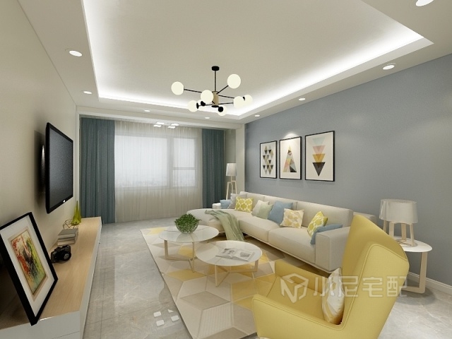 客廳是極簡(jiǎn)的現(xiàn)代風(fēng)格:簡(jiǎn)單的幾何形吊燈、干凈的墻壁。讓人覺(jué)得一片歲月靜好。