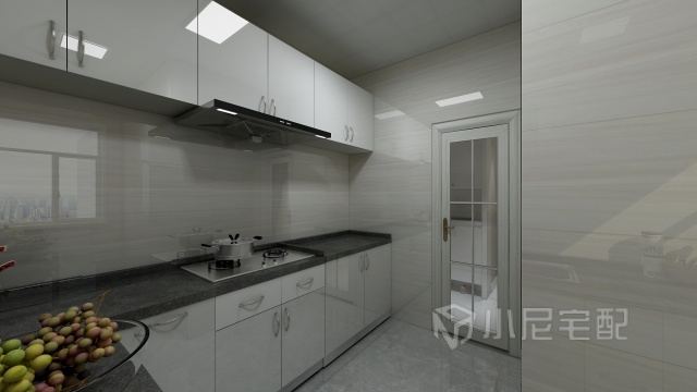 廚房暖色的墻磚搭配白烤漆櫥柜,簡潔輕快