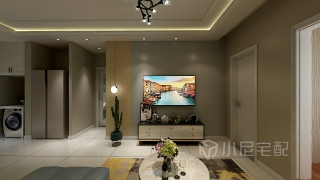 門廳放置洗衣機和冰箱,多出的空間加以合理利用。空間布局更簡潔