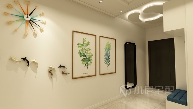 玄關墻面采用各類墻飾及掛畫裝飾