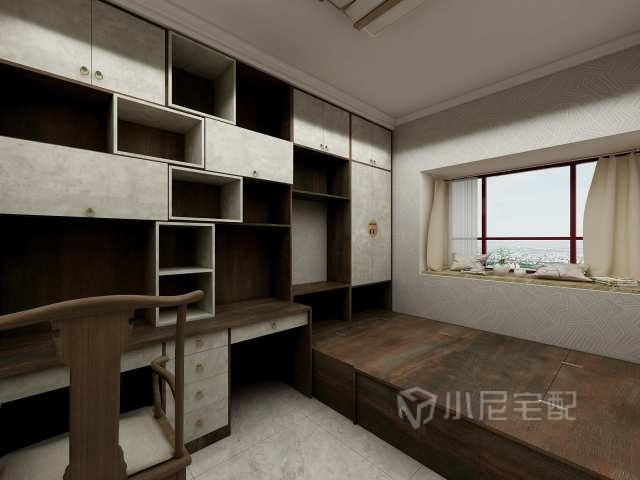 中式風格的榻榻米也是別具一格,深色柜體與淺色門板、格子搭配的剛剛好,整體端莊素雅,使人凝神靜氣,多格子的設計方便儲物以及擺放書籍和擺件,展現主人的品味。