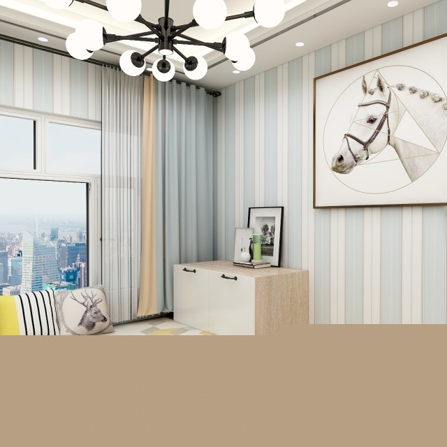 客廳白色搭配深藍色窗簾,給人一個好心情