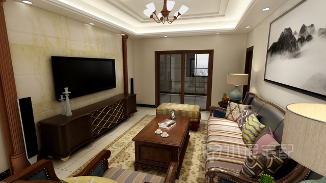 結合家庭成員的喜好風格,在設計上采用了以美式風格為主在細節上融入中式元素進去的混搭設計。