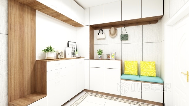利用L型大玄關的造型有效的利用了入戶花園中的大面積空間。