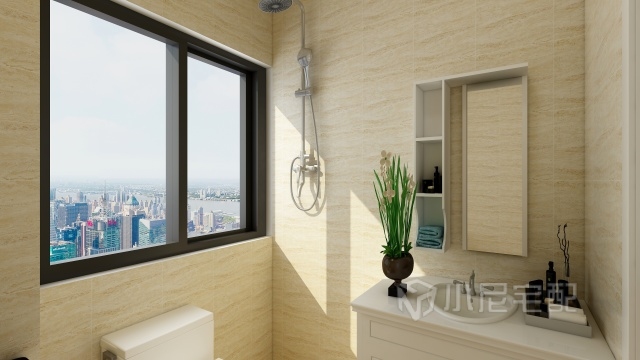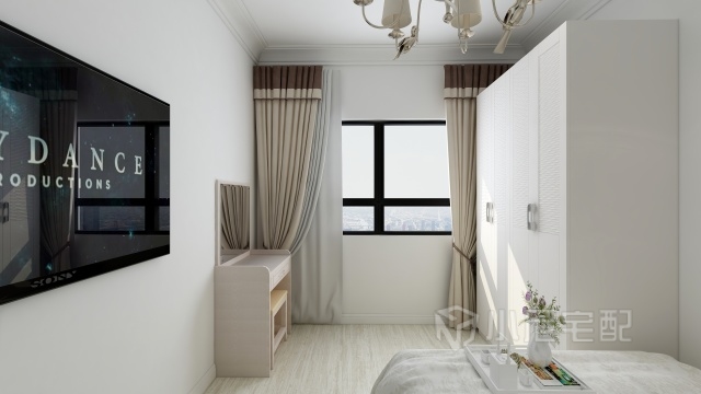 次臥淡藍色窗簾配合白色精品床飾,一切都以簡潔為主