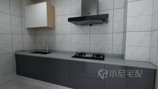 廚房黑白撞色,輔以原木柜體,莊重不凌亂