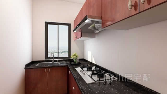 對比強烈的紅黑配色給整個廚房區域帶來了不一樣的新鮮感。