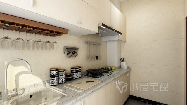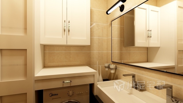 不同于其他空間,廚衛空間使用了淺色系的現代風格。
