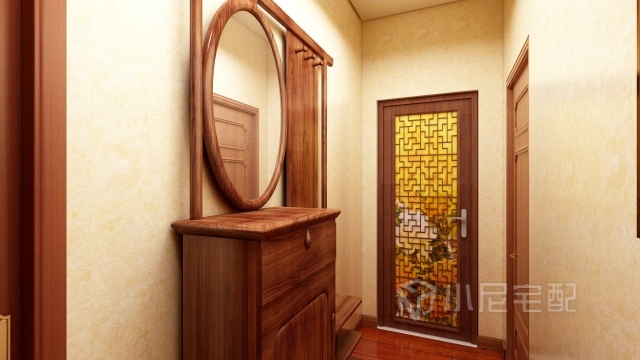 精選的家具材質搭配上淺色的壁紙,這種設計很好的烘托出了中式風格的獨到氛圍。