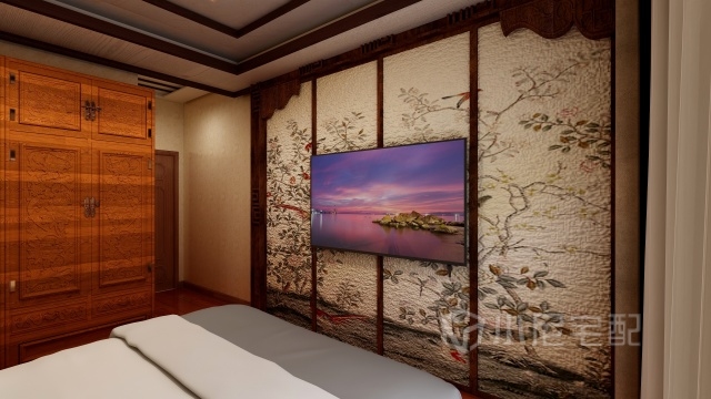 主臥中單獨做了一個電視背景墻,避免了因為戶型的原因所造成的擁擠。