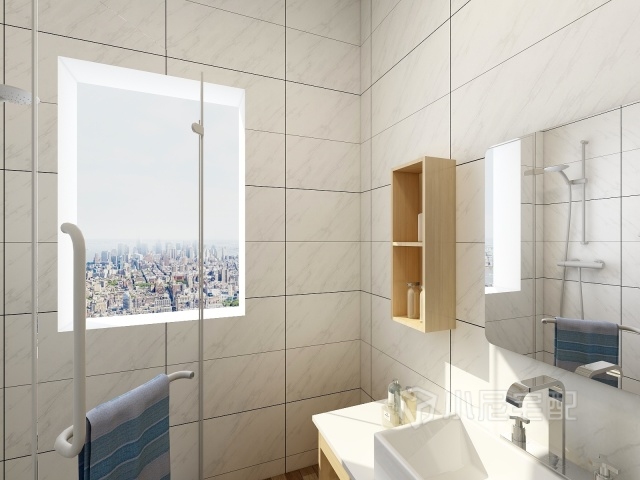衛(wèi)生間雖然小,盡量集成了洗浴房,讓空間利用更加高,而且達到了客戶需求的干濕分離