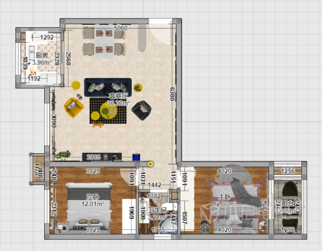 客餐一體,沒有沙發(fā)背景墻,客廳豁然開朗