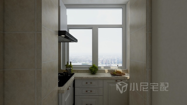 廚房空間小,顯得狹小,充分利用陽臺空間