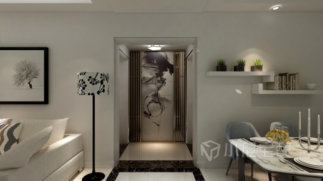 進門正對衣帽間隱形門,隱形門采用裝飾畫裝飾,藝術感很強