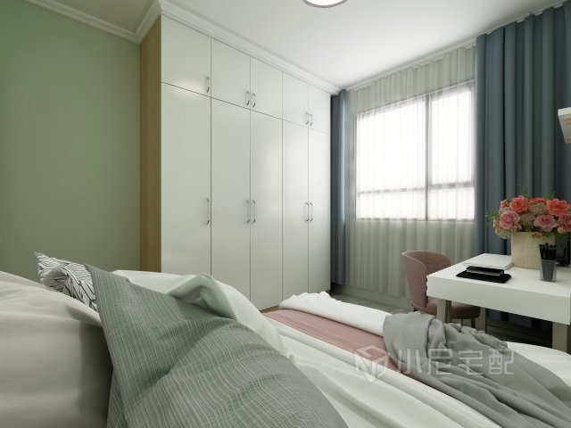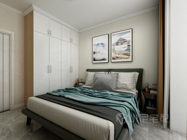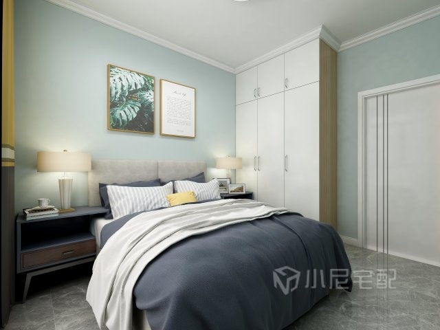 臥室是個需要完全讓人身心放松下來的地方,墻頂面沒有做太多的造型,只是床頭的掛畫與床品的顏色進(jìn)行搭配讓空間更加活躍。