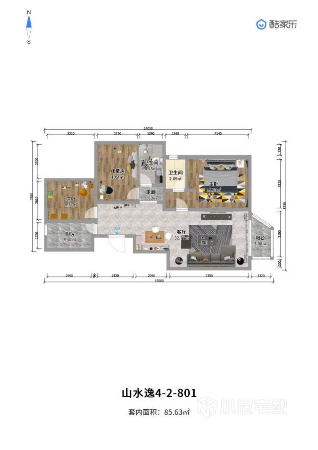 客廳以灰色現(xiàn)代簡(jiǎn)約裝飾,給業(yè)主一種回家舒服自在的感覺,臥室以不同的風(fēng)格體現(xiàn),以滿足孩子的愿望,整體以舒適,時(shí)尚結(jié)合打造出一個(gè)完美的家。