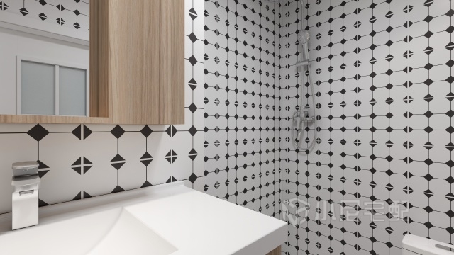 主衛生間采用黑白格子墻磚,跳躍感十足
