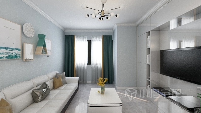 客廳做整體柜電視墻,增加儲物空間,簡單白色沙發配色