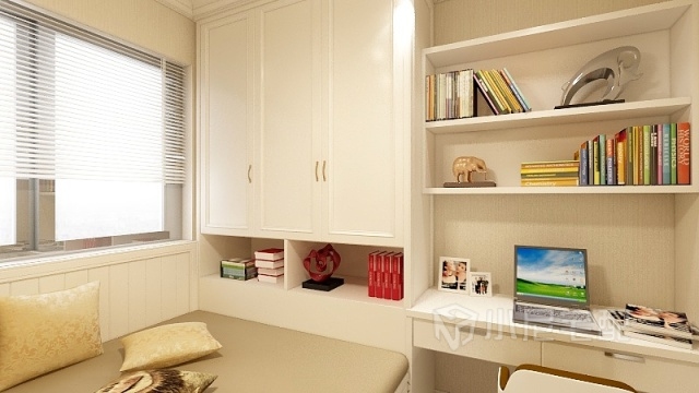 次臥室因空間較小,所以采用推拉衣柜,配合平板床頭,顯得緊湊自然