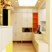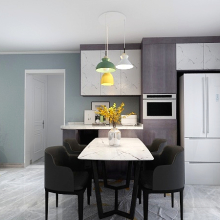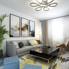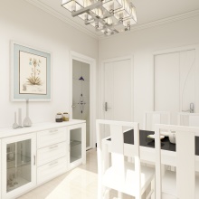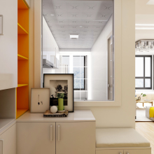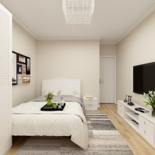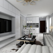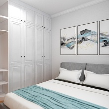 方案整體風格趨向于簡約風格,戶型采光較好,大面積灰色并不會另空間壓抑,配合白色踢腳線、木地板和原木色家具,使整個空間能更好的展現;原是三室一廳兩衛的戶型,為滿足業主對于衣帽間的需要,將主臥內的衛生間改造成衣帽間;原戶型內過道很寬,占用了很大的空間,后將隔墻拆改,占用一部分衣帽間的空間,使過道一側留出內嵌展示柜的深度,弱化3米多長的過道。