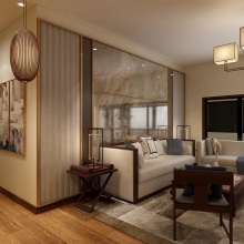 市區最貴的小區之一,頂層海景房,業主要求設計感強,多用大理石和紅木。整套裝下來十分奢侈,