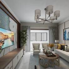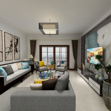 個人早起作品相當滿意的效果,客餐廳的藍墻業主非常喜歡。客餐廳是用3d做的燈光效果完美。