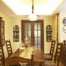 因是西班牙風格設計,故帶有一些粗放、喜悅、激情情節,同時不乏溫馨、精細的細節內容。家裝家具一體價:15萬。