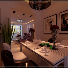 設計師良好運用硬體條件及調整室內格局,使生活空間達到最佳的配置,為不浪費優美的風景,特意將客餐廳連結成氣,讓偌大的窗景,成為屋內的視覺焦點。家裝家具一體價:40萬。