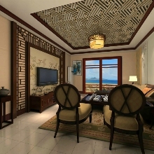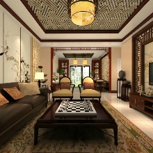 業主一家四口,夫妻兩人,另有16歲的大兒子和4歲的小兒子,夫妻兩人都鐘情中式風格,較喜歡偏紅木的家具,女主人偏愛壁紙,所以綜合考慮下做了這套方案。